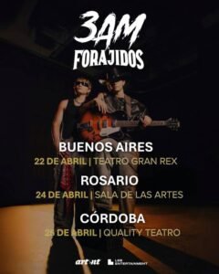 Luego de sus exitosas visitas a Buenos Aires, el dúo 3AM, anuncia su esperado regreso al país con la confirmación de su show en el Teatro Gran Rex de Buenos Aires, junto a sus visitas por primera vez en Rosario y Córdoba como parte del FORAJIDOS TOUR..